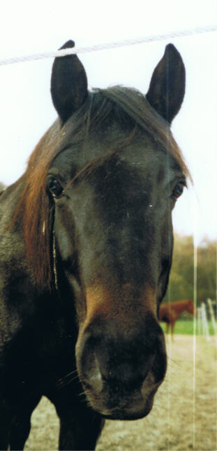 Wie Max war Domino Schulpferd im Reitverein und er war mein Reitbeteiligungspferd geworden. Als Kurt aus gesundheitlichen Gründen als Reitlehrer aufhören musste, und sein Nachfolger sich als Mensch ohne Einfühlungsvermögen dem Pferd gegenüber herausstellte, veränderte sich Domino massiv. Er begann, sich selbst zu beißen, wurde ein einziges Nervenbündel und biss und trat schließlich nach den Kindern, die ihn für den Unterricht putzen und satteln wollten. Seine Brust und beide Körperseiten waren bald mit blutigen Narben übersät, die er sich selber zugefügt hatte. Und ich, ich konnte ihm nicht helfen. Natürlich milderten unsere Spaziergänge draußen und der (damals nicht selbstverständliche!) tägliche Weidegang Dominos Stress etwas ab, aber sein Gesamtzustand wurde immer, immer schlechter. Ich verzweifelte daran und kam des öfteren abends heulend nach Hause. Bis meine Eltern mich festnagelten um endlich zu erfahren, was eigentlich mit mir los war. Sie kauften Domino und ich bin heute noch glücklich darüber!!